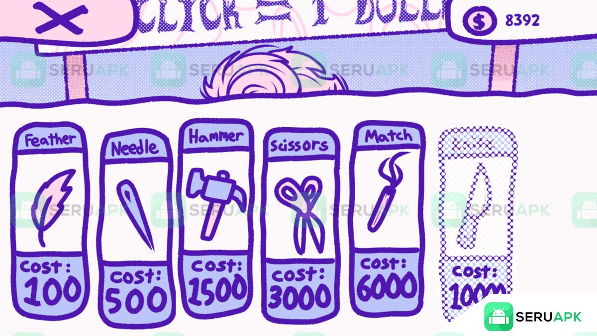 Anda maju dengan mengetuk untuk mendapatkan uang dan menginvestasikannya dalam peningkatan. Saat Anda mendekati target $25.000, Anda akan membuka lebih banyak opsi dan tantangan.