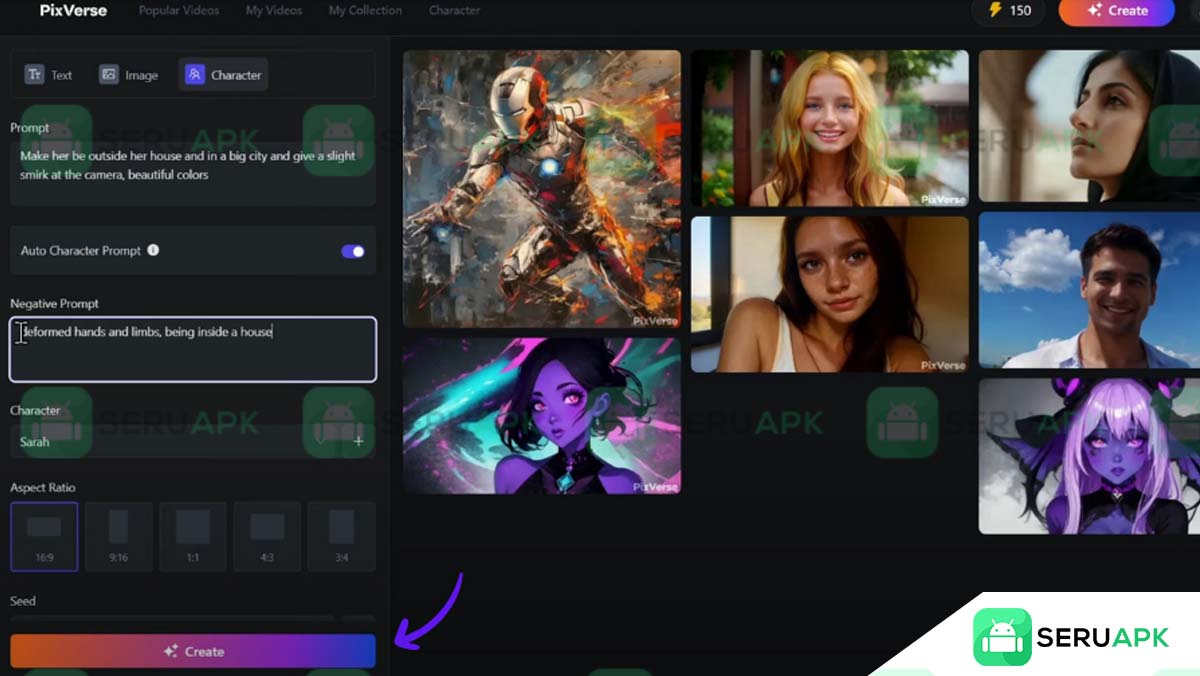 AI dalam Pixverse APK menginterpretasikan masukan Anda, seperti perintah teks atau foto, dan mengubahnya menjadi gambar, animasi, atau klip video yang unik.
