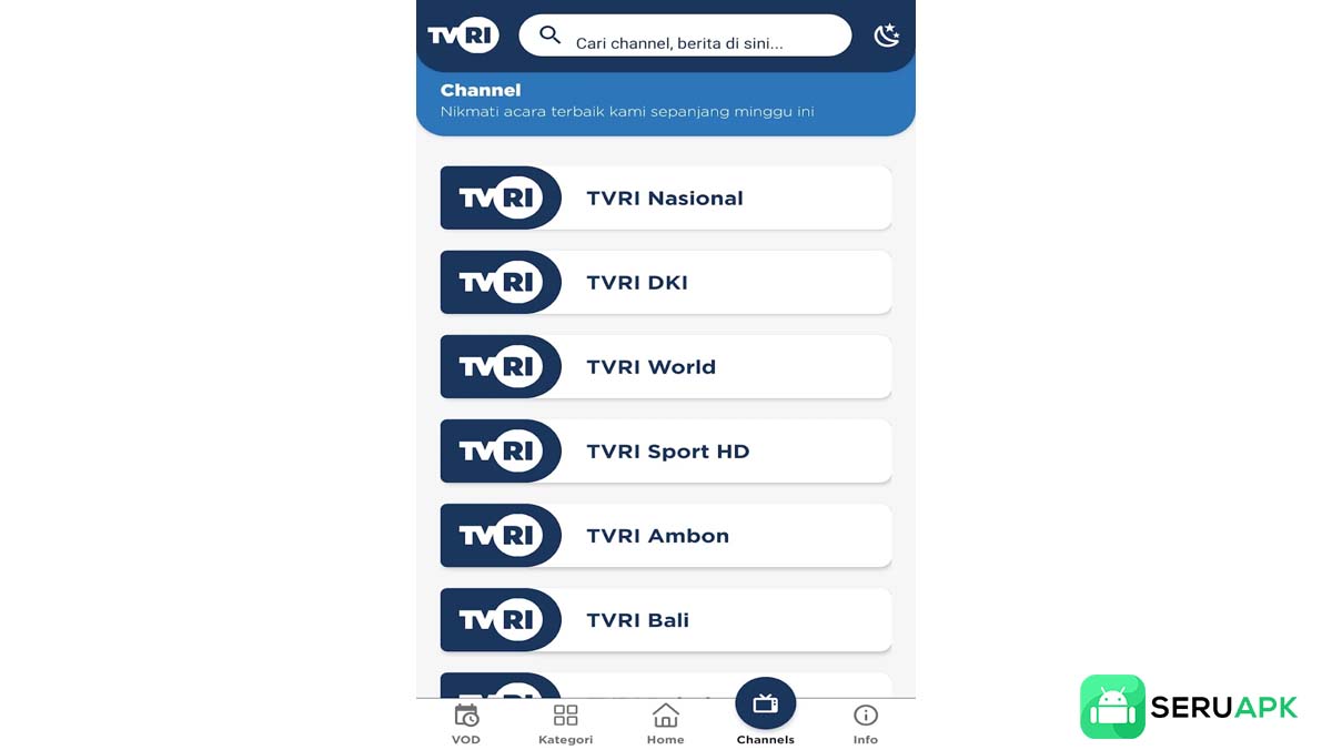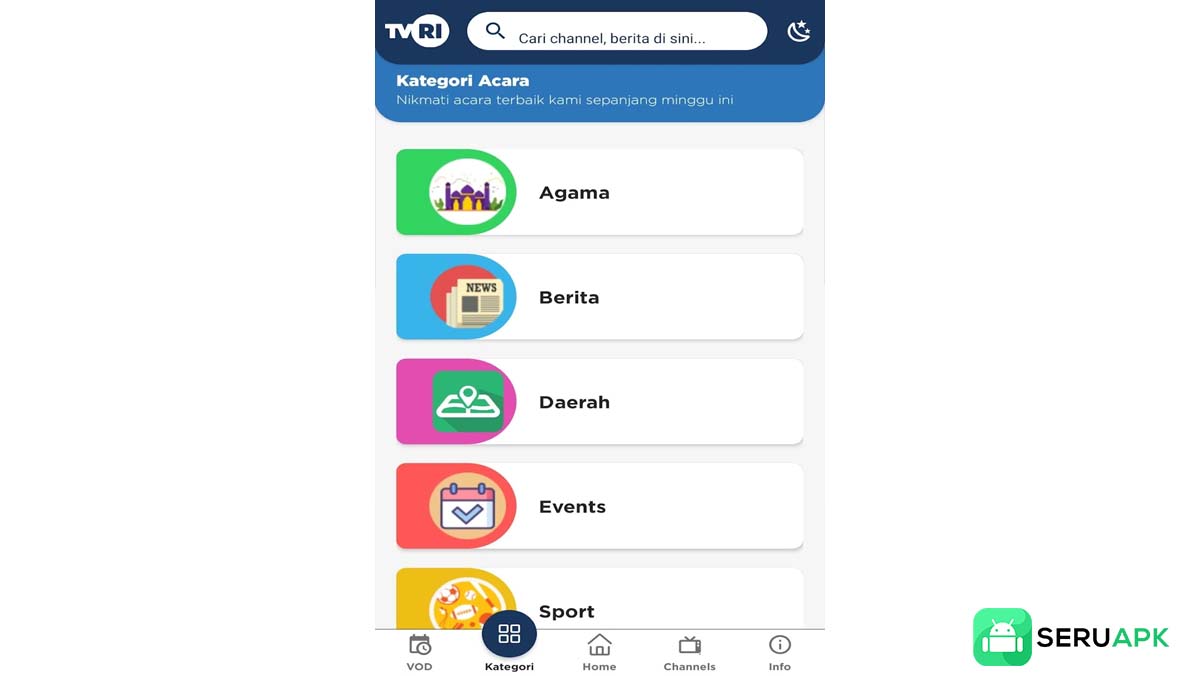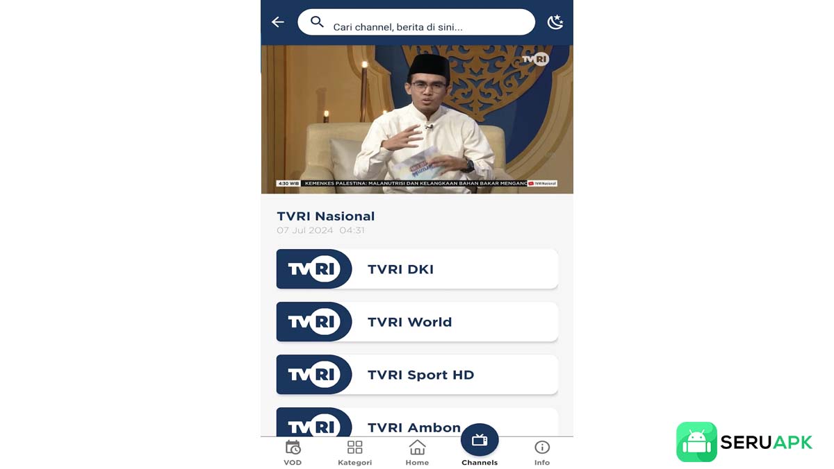 Jelajahi fitur utama TVRI APK